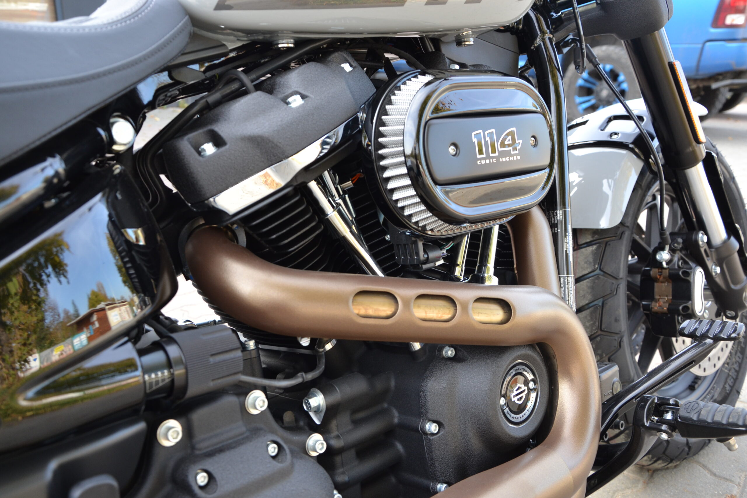 Díky široké zadní pneumatice, zadnímu blatníku ve stylu bobtail, dopředu vysunutému 21palcovému přednímu kolu a rovným řídítkům spojuje Breakout klasický styl chopperu s výkonem pohonné jednotky Milwaukee-Eight® 117 Custom.